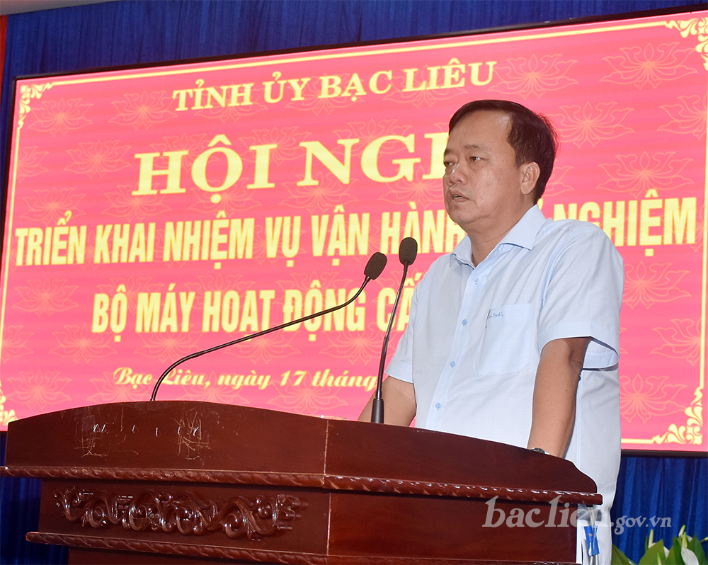 Lãnh đạo Sở Nội vụ trình bày Kế hoạch tổ chức vận hành thử nghiệm mô hình chính quyền cấp xã sau khi sắp xếp đơn vị hành chính và thực hiện chính quyền địa phương 02 cấp. Theo đó, 7 xã, phường thí điểm vận hành vào ngày 20/6 gồm: Phường Bạc Liêu, Phường Giá Rai, xã Vĩnh Vĩnh Lợi, xã Hòa Bình, xã Phước Long, xã Hồng Dân, xã Long Điền. Các phường, xã còn lại sẽ triển khai vận hành thử đồng loạt từ ngày 24 đến 28/6. Sau đó họp rút kinh nghiệm để vận hành chính thức vào ngày 01/7. Theo kế hoạch cũng đồng thời vận hành thử nghiệm Hệ thống quản lý văn bản và điều hành; vận hành hoạt động Trung tâm hành chính công…