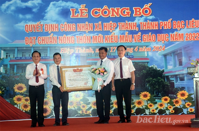 Công nhận xã Hiệp Thành, thành phố Bạc Liêu đạt chuẩn NTM kiểu mẫu về lĩnh vực giáo dục