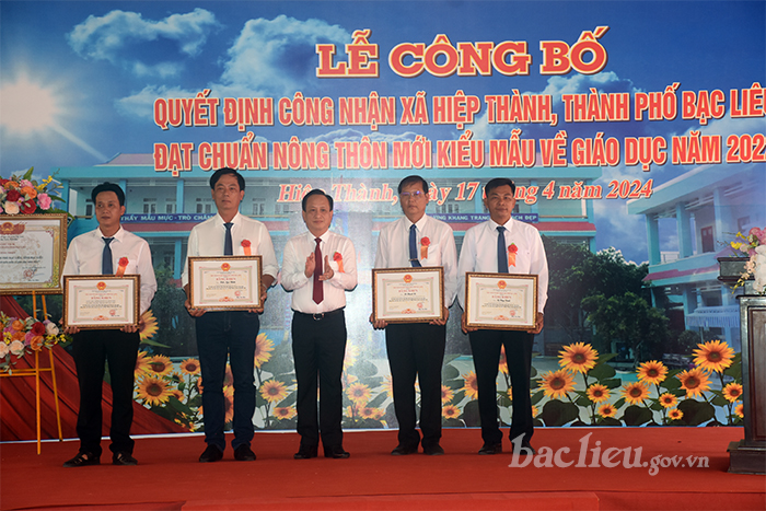 Dịp này, UBND tỉnh tặng bằng khen cho 4 tập thể và cá nhân có thành tích xuất sắc trong phong trào xây dựng NTM kiểu mẫu xã Hiệp Thành; UBND thành phố Bạc Liêu và UBND xã Hiệp Thành tặng giấy khen cho nhiều tập thể, cá nhân có thành tích xuất sắc trong phong trào xây dựng NTM kiểu mẫu.