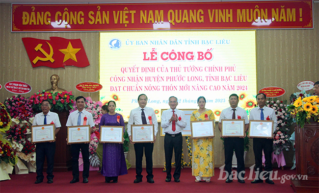 Ngày 2/6, UBND tỉnh Bạc Liêu tổ chức trọng thể Lễ công bố Quyết định của Thủ tướng Chính phủ công nhận huyện Phước Long đạt chuẩn huyện nông thôn mới (NTM) nâng cao năm 2024.